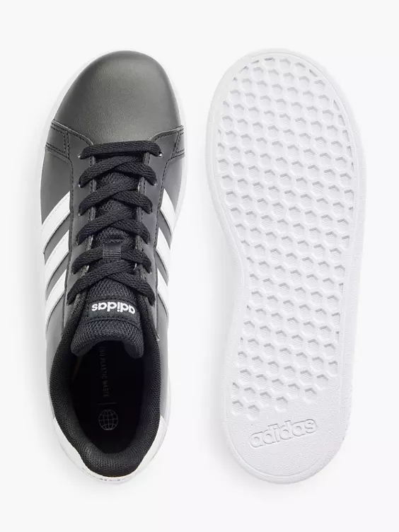 Dieser adidas Schuh für Kinder ist vom Tennis-Style der 70er inspiriert und perfekt für deinen kleinen Sport-Fan. Die flexible Gummi-Cupsohle sorgt außerdem für sicheren Grip bei jedem Schritt. Das Obermaterial hat einen Recycling-Anteil von mindestens 50 %. Dieses Produkt ist nur eine unserer Lösungen im Kampf gegen Plastikmüll.